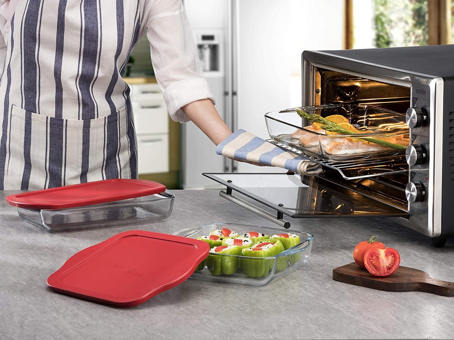 • Wunderbar als Auflaufform, Backform, Servierform, zum Aufbewahren, Aufwärmen, Servieren, Einfrieren, Überbacken